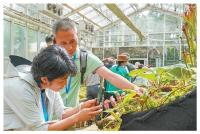游客在“扶荔宮”種子博物館參觀。 游客在“扶荔宮”溫室群拍照。 “扶荔宮”溫室群。 以上圖片均為新華社記者彭奕凱攝 這個暑期,位于云南昆明市的中國科學院昆明植物研究所昆明植物園內(nèi)的“扶荔宮”溫室群,吸引了很多游客前來打卡參觀。 昆明植物園科普辦負責人陳智發(fā)介紹,“扶荔宮”是世界上最早有文字記載的溫室,漢武帝時期曾建于上林苑中,用于栽種南方果木,我國植物學家吳征鎰院士借此典故命名了這個溫室群。 主體溫室、種子博物館、隱花植物館……“扶荔宮”溫室群保存了超過2500種熱帶植物,打造出奇趣滿滿的“植物樂園”——從楊桃、蓮霧、番石榴等熱帶水果,到仙人掌、仙人球、仙人柱等熱帶沙漠植物;從獨木成林的景觀,到能長到幾十米高的望天樹,都在“扶荔宮”溫室群中得到了集中展示。 從最初為了科研建立溫室、保存收集來的熱帶植物,到如今為了科普不斷豐富物種名錄,昆明植物園里的這個植物世界,以其獨特的魅力,向世人展示云南乃至全球生物多樣性的寶貴財富。 《人民日報》(2025年9月11日?第10版) 來源:http://paper.people.com.cn/rmrb/pc/content/202509/11/content_30104453.html |