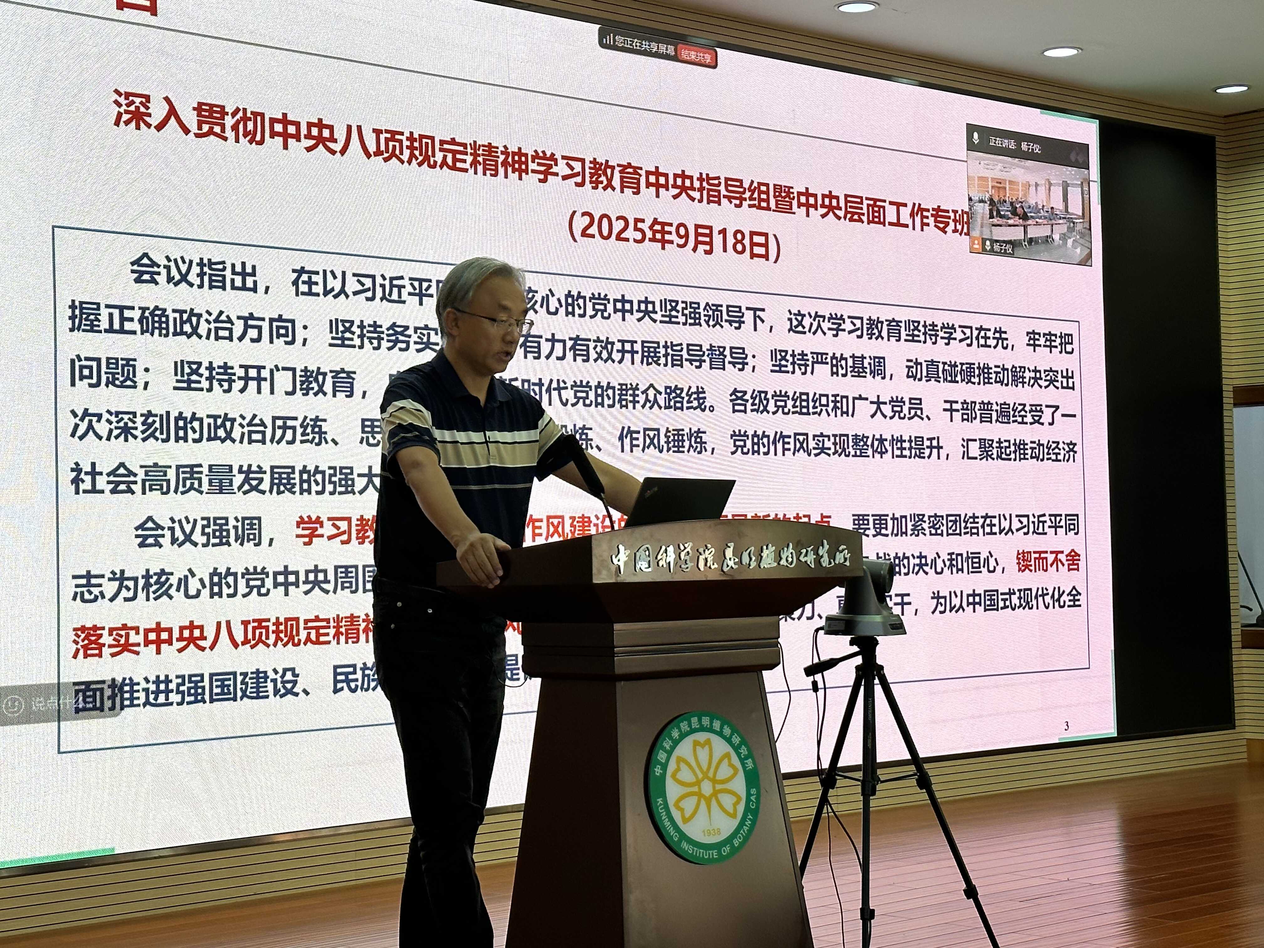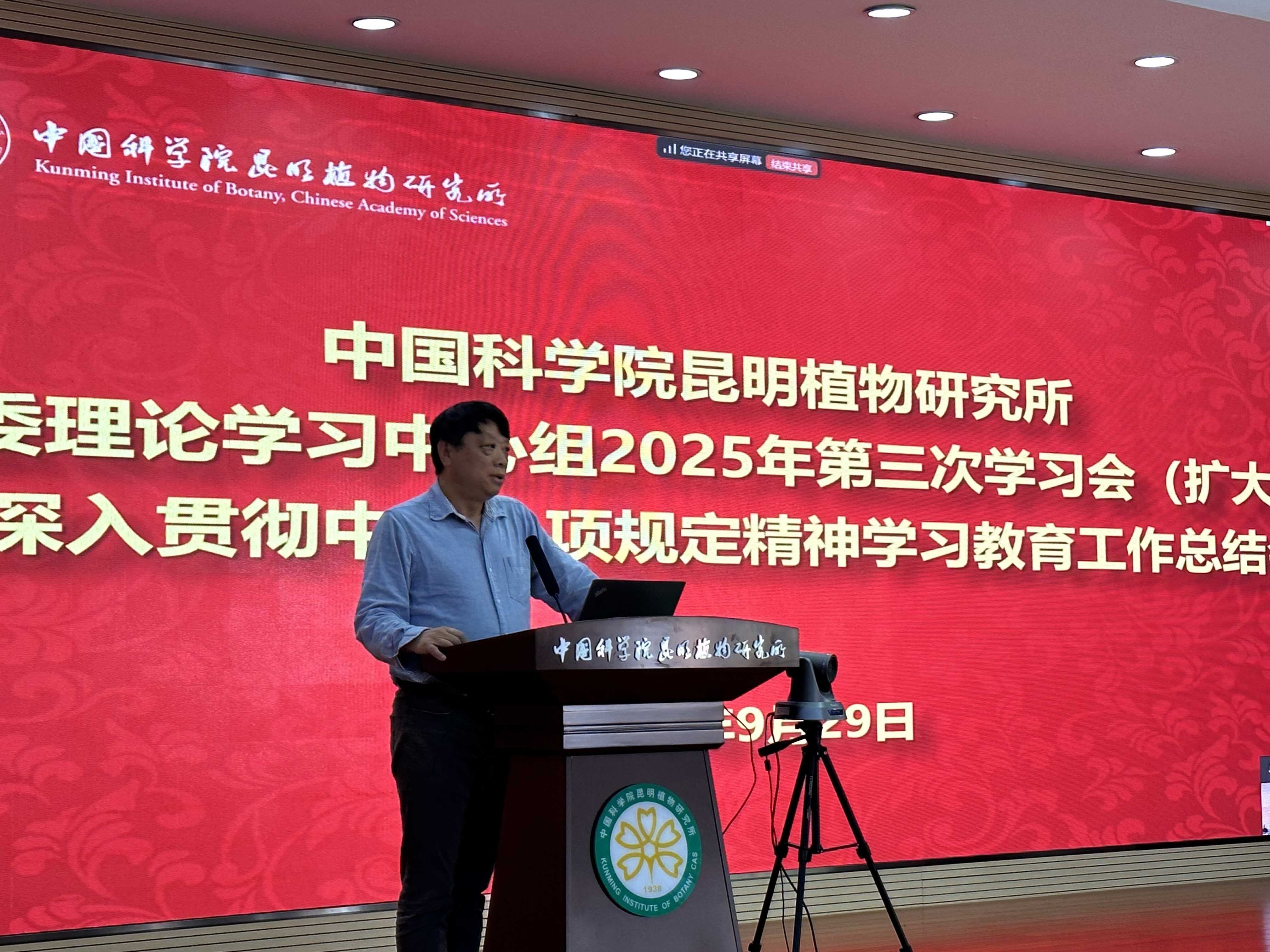 昆明植物所召開黨委理論學(xué)習(xí)中心組2025年第三次集中學(xué)習(xí)會(擴大)暨深入貫徹中央八項規(guī)定精神學(xué)習(xí)教育工作總結(jié)會 文章來源:黨委辦公室 | 發(fā)布時間:2025-09-30 | 作者: | 瀏覽次數(shù): | 【打印】 【關(guān)閉】 9月29日,中國科學(xué)院昆明植物研究所召開黨委理論學(xué)習(xí)中心組2025年第三次集中學(xué)習(xí)會(擴大)暨深入貫徹中央八項規(guī)定精神學(xué)習(xí)教育工作總結(jié)會。所長、黨委書記普諾·白瑪?shù)ぴ鲋鞒謺h。黨委理論學(xué)習(xí)中心組成員、紀委委員、所務(wù)委員、科研和管理部門負責人、黨(總)支部書記參加會議。 黨委副書記、紀委書記廖雷青領(lǐng)學(xué)《習(xí)近平談治國理政》第五卷重要內(nèi)容和核心要義等學(xué)習(xí)要點,教育引導(dǎo)黨員同志原原本本學(xué)、聯(lián)系實際學(xué),把學(xué)習(xí)成效轉(zhuǎn)化為加快搶占科技制高點的強大動力,并結(jié)合國慶、中秋節(jié)日廉政工作作重點發(fā)言,通報“中央和國家機關(guān)5起違反中央八項規(guī)定精神典型問題”,筑牢思想防線,恪守清廉本色,努力營造風清氣正的節(jié)日氛圍。 普諾·白瑪?shù)ぴ鰰洀膶W(xué)習(xí)教育工作的學(xué)習(xí)研討情況、問題查擺、集中整治和進展成效等方面對研究所開展深入貫徹中央八項規(guī)定精神學(xué)習(xí)教育工作進行總結(jié),貫徹落實院黨組總結(jié)學(xué)習(xí)教育的工作部署,確保學(xué)有質(zhì)量、查有力度、改有成效,研究部署推進作風建設(shè)常態(tài)化長效化工作,切實以作風學(xué)風建設(shè)的良好成效為加快搶占科技制高點提供有力保障。 普諾·白瑪?shù)ぴ鰰涍€對中國科學(xué)院“新三定”相關(guān)文件進行宣貫部署,要求各黨支部通過“三會一課”等形式,帶領(lǐng)黨員同志深刻了解“新三定”的重要意義,凝聚共識,以搶占科技制高點為核心任務(wù),扎實抓好國家重大科技任務(wù)組織實施。 黨委委員孫航院士圍繞研究所踐行“習(xí)近平生態(tài)文明思想”和“兩山”理論,在生物多樣性保護和生態(tài)安全等方面作出的重要貢獻,勇?lián)聲r代科研使命擔當?shù)冗M行重點發(fā)言。黨委委員于富強研究員以“國家重要野生植物種質(zhì)資源庫能力提升‘兩重’建設(shè)項目”為主線,圍繞為國家種質(zhì)資源收集保藏與資源可持續(xù)開發(fā)利用貢獻力量作重點發(fā)言。 與會人員談學(xué)習(xí)體會,結(jié)合中國科學(xué)院“新三定”文件精神、“十五五”規(guī)劃、國家重大科技任務(wù)謀劃、人才隊伍建設(shè)等工作進行了研討交流。 普諾·白瑪?shù)ぴ鰰浽诳偨Y(jié)中指出,全所黨員干部要持續(xù)鞏固深入貫徹中央八項規(guī)定精神學(xué)習(xí)教育成果,堅持嚴的基調(diào),鍥而不舍落實中央八項規(guī)定精神,以嚴明紀律和優(yōu)良作風切實推動研究所年度各項任務(wù)落地,以實際行動奮力搶占科技制高點。 |