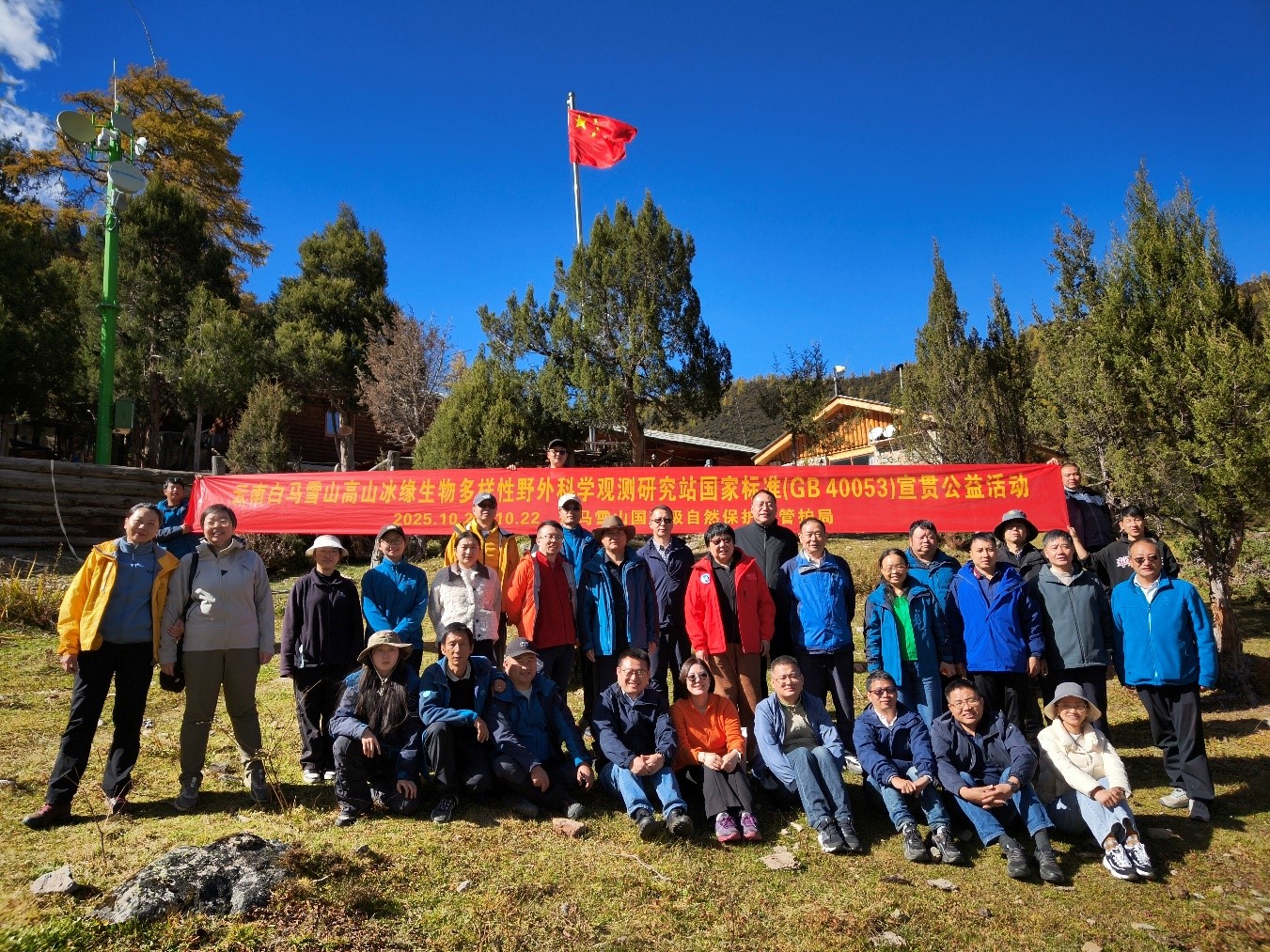 云南白馬雪山高山冰緣生物多樣性野外科學(xué)觀測研究站國家標(biāo)準(zhǔn)(GB 40053)宣貫公益活動(dòng)在香格里拉成功舉辦 文章來源:科技合作處 | 發(fā)布時(shí)間:2025-10-24 | 作者:文/晏忠,楊云珊;圖/張鵬萬,張?zhí)?nbsp; | 瀏覽次數(shù): | 【打印】 【關(guān)閉】 10月20日至22日,云南白馬雪山高山冰緣生物多樣性野外科學(xué)觀測研究站國家標(biāo)準(zhǔn)(GB 40053)宣貫公益活動(dòng)成功舉辦。此次活動(dòng)由中國森林生態(tài)系統(tǒng)定位觀測研究網(wǎng)絡(luò)(CFERN)發(fā)起并主辦,云南白馬雪山國家級(jí)自然保護(hù)區(qū)管護(hù)局和中國科學(xué)院昆明植物研究所聯(lián)合承辦。CFERN首席科學(xué)家王兵、CFERN森林生態(tài)站有關(guān)專家、標(biāo)準(zhǔn)化技術(shù)服務(wù)專家,迪慶州林業(yè)局、生態(tài)環(huán)境局等有關(guān)部門領(lǐng)導(dǎo)齊聚香格里拉,共話森林生態(tài)系統(tǒng)定位觀測研究網(wǎng)絡(luò)標(biāo)準(zhǔn)化建設(shè)。 10月21日,國標(biāo)宣貫專家組成員與活動(dòng)代表依據(jù)國家標(biāo)準(zhǔn)(GB 40053),深入云南白馬雪山國家級(jí)自然保護(hù)區(qū),針對(duì)云南白馬雪山高山冰緣生物多樣性野外科學(xué)觀測研究站的站址區(qū)劃、基礎(chǔ)設(shè)施建設(shè)進(jìn)行野外現(xiàn)場宣貫和咨詢,包括以一個(gè)主站三個(gè)輔站為區(qū)劃,確定綜合實(shí)驗(yàn)樓選址,以及水、土、氣、生各要素觀測場建設(shè)與配套儀器設(shè)備布設(shè)等關(guān)鍵節(jié)點(diǎn),給予精準(zhǔn)指導(dǎo),并提出精準(zhǔn)優(yōu)化的建議。