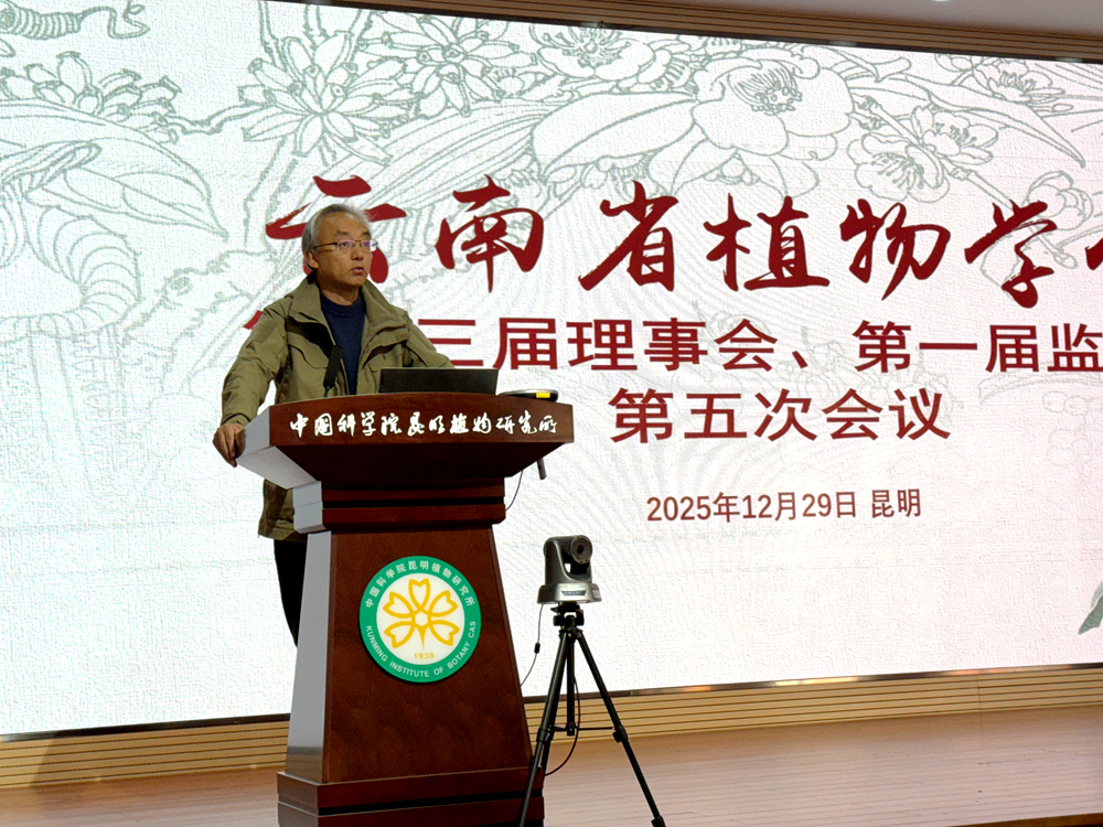 云南省植物學(xué)會第十三屆理事會第五次會議在昆明植物所召開 文章來源:云南省植物學(xué)會 | 發(fā)布時間:2025-12-31 | 作者:文/方小文,楊云珊;圖/楊帥 | 瀏覽次數(shù): | 【打印】 【關(guān)閉】 12月29日,云南省植物學(xué)會第十三屆理事會第五次會議在中國科學(xué)院昆明植物研究所召開。學(xué)會理事長孫航院士、副理事長普諾·白瑪?shù)ぴ鲅芯繂T、楊永平研究員、王繼華研究員、何霞紅教授等48位理事和監(jiān)事長周浙昆研究員以線下線上結(jié)合的方式參會,會議由孫航理事長主持。 昆明植物所所長、黨委書記普諾·白瑪?shù)ぴ鲅芯繂T在致辭中表示,昆明植物所作為學(xué)會支撐單位,始終與學(xué)會在學(xué)術(shù)平臺搭建和跨領(lǐng)域創(chuàng)新、科學(xué)傳播、科技智庫建設(shè)、科技工作者舉薦及鄉(xiāng)村振興等方面緊密合作。本次會議將是對學(xué)會本屆理事會的全面總結(jié),也是未來發(fā)展的新起點,研究所會持續(xù)履行好支撐單位職責(zé),為學(xué)會工作提供堅實保障,攜手推動植物學(xué)科高質(zhì)量發(fā)展。